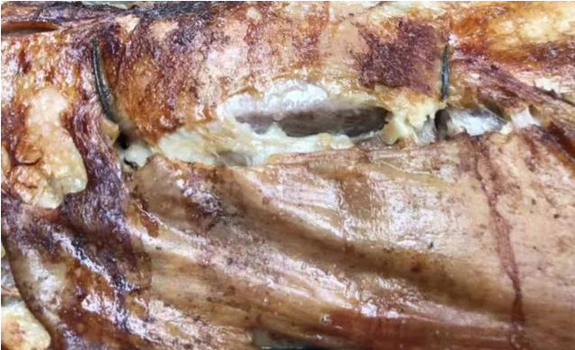 烤全羊以1—3年的純蒙山山羊?yàn)樵?,配以蒙山天麻、?dāng)歸、陳皮、香葉、青果、白芷等二十種中草藥,放置爐上燒烤而成,外形完整,色澤金黃,外酥里嫩,食而不膩,算是這里的特色美食。